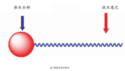 “表面活性剂”是“表面活性物质”的一组化学物质的通用术语。表面活性剂分子中存在疏水基团(尾部)和亲水基团(头部),决定了表面活性剂是具有两亲属性(亲水性和疏水性环境的亲和性)的有机化合物。因此,表面活性剂分子同时含有水不溶性(油溶性)和水溶性成分。表面活性剂分子将迁移到水表面,其中不溶性疏水基团可以延伸出大部分水相,或者如果水与油混合,则进入油相,而水溶性头部组保持在水相中。表面活性剂分子的这种排列和聚集起着改变水/空气或水/油界面处水的表面性质的作用(图1)。
