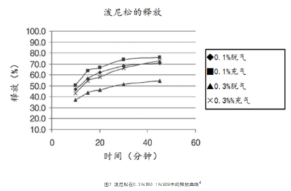 如前所述,溶出介质中表面活性剂的存在改变了介质的表面和界面张力。这导致溶解氧在介质中的溶解度的变化。Fliszar等人4评估了含有表面活性剂的溶出介质中溶解氧的作用。使用含有0.5%SLS,2.0%SLS和0.5%吐温80的含水(不含表面活性剂)介质和溶出介质,研究了几种标准制剂对氧溶解的作用。
